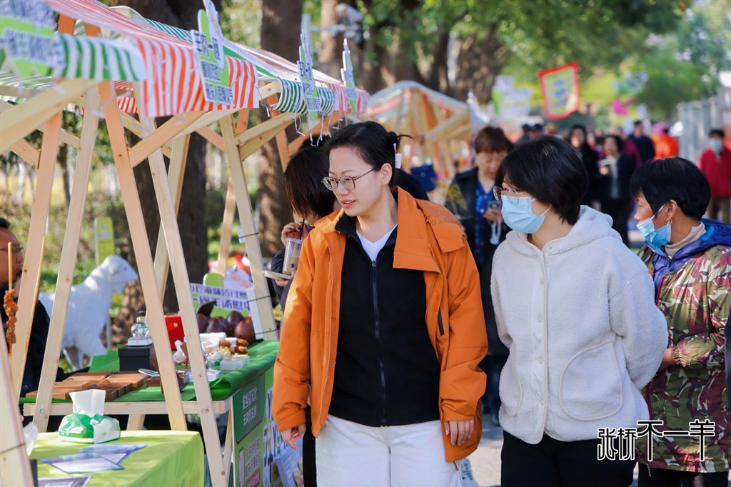 另一边的稻田集市里,文创市集、美食市集两大市集中,金山卫镇特色农副产品、传统手工艺品、金山文创等摊位吸引了年轻人的目光。各类展品琳琅满目、独具匠心,让人目不暇接。